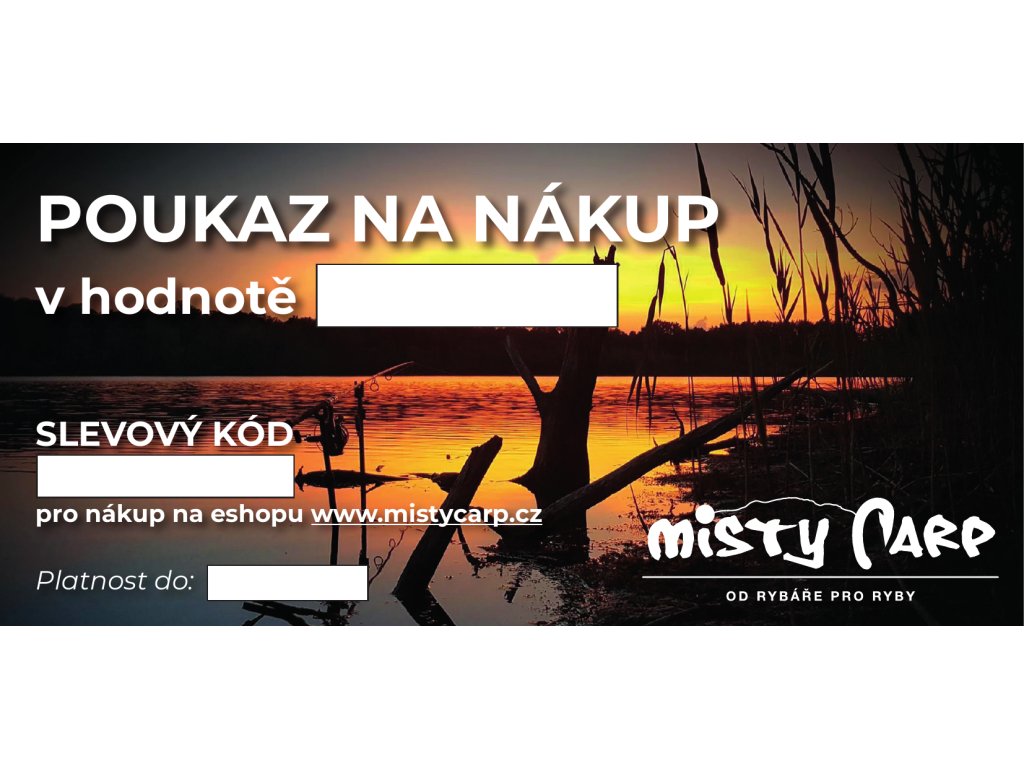 Dárkový poukaz Misty Carp je ideální volba pro každého rybáře, který miluje kvalitní nástrahy a návnady. Vyber si hodnotu, daruj radost – obdarovaný si poté sám zvolí přesně to, co potřebuje z naší aktuální nabídky.